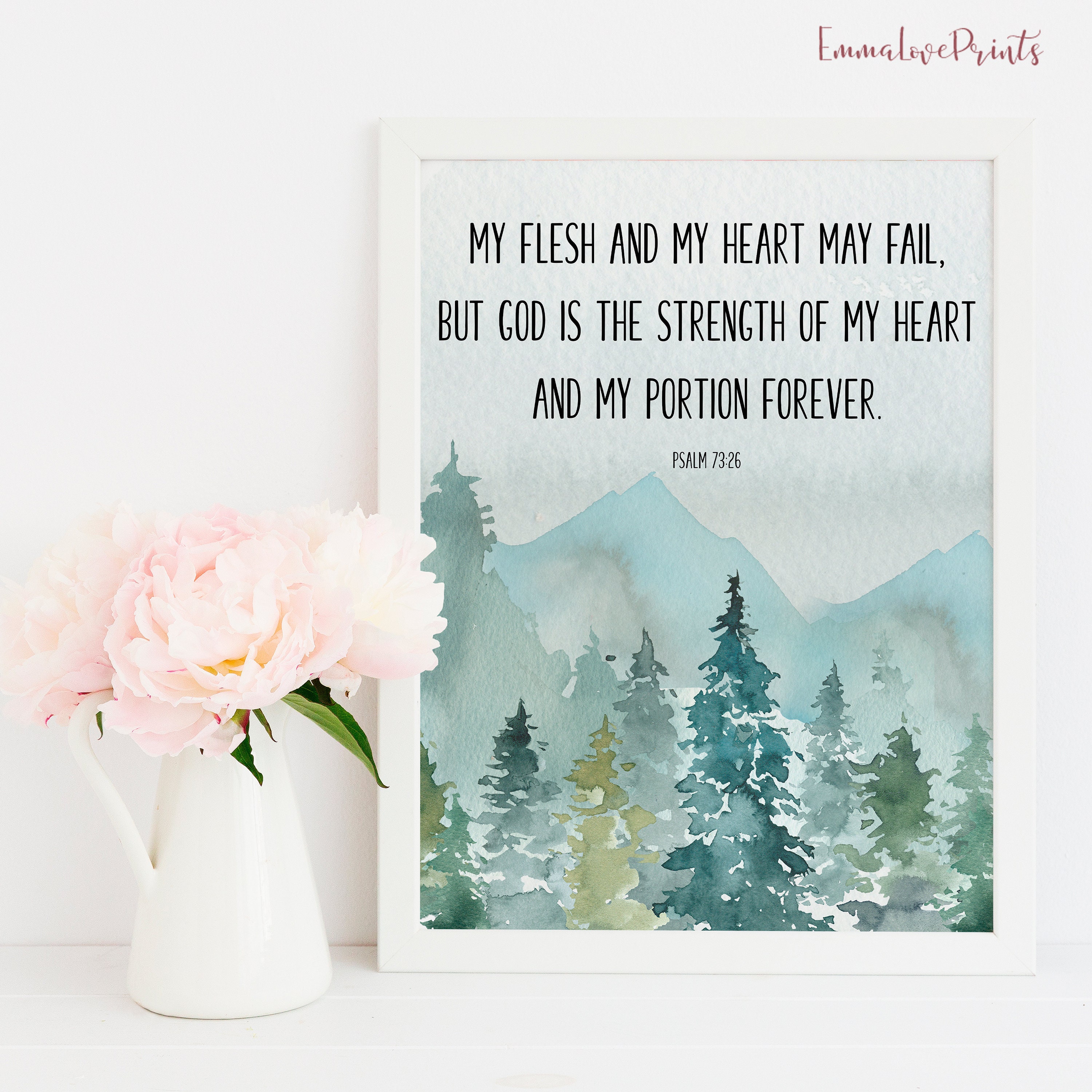 Bible Verse Prints Psalm 73 26 Christian Wall Art Scripture Etsy
